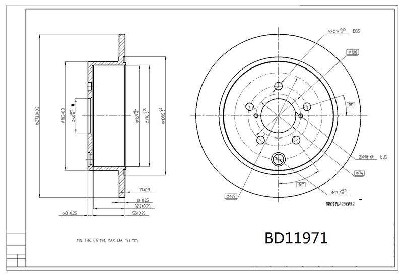 Толщина тормозного диска (мм): 10