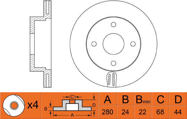 Толщина тормозного диска (мм): 24