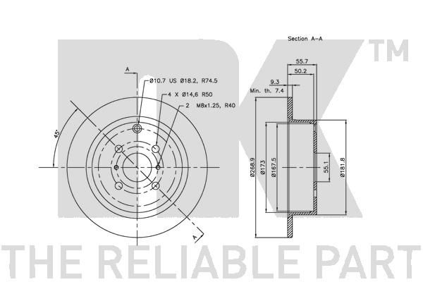 Минимальная толщина [мм]: 7.4