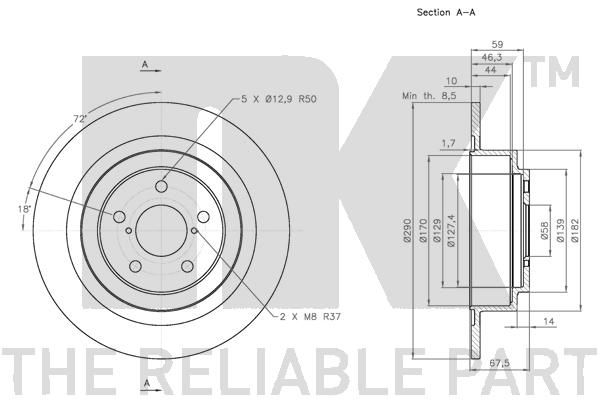 Минимальная толщина [мм]: 8.5