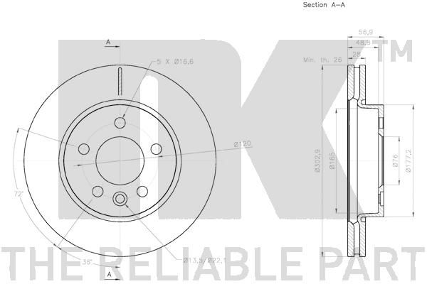 Минимальная толщина [мм]: 26