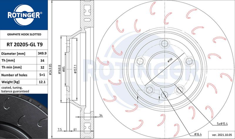 Толщина тормозного диска (мм): 34