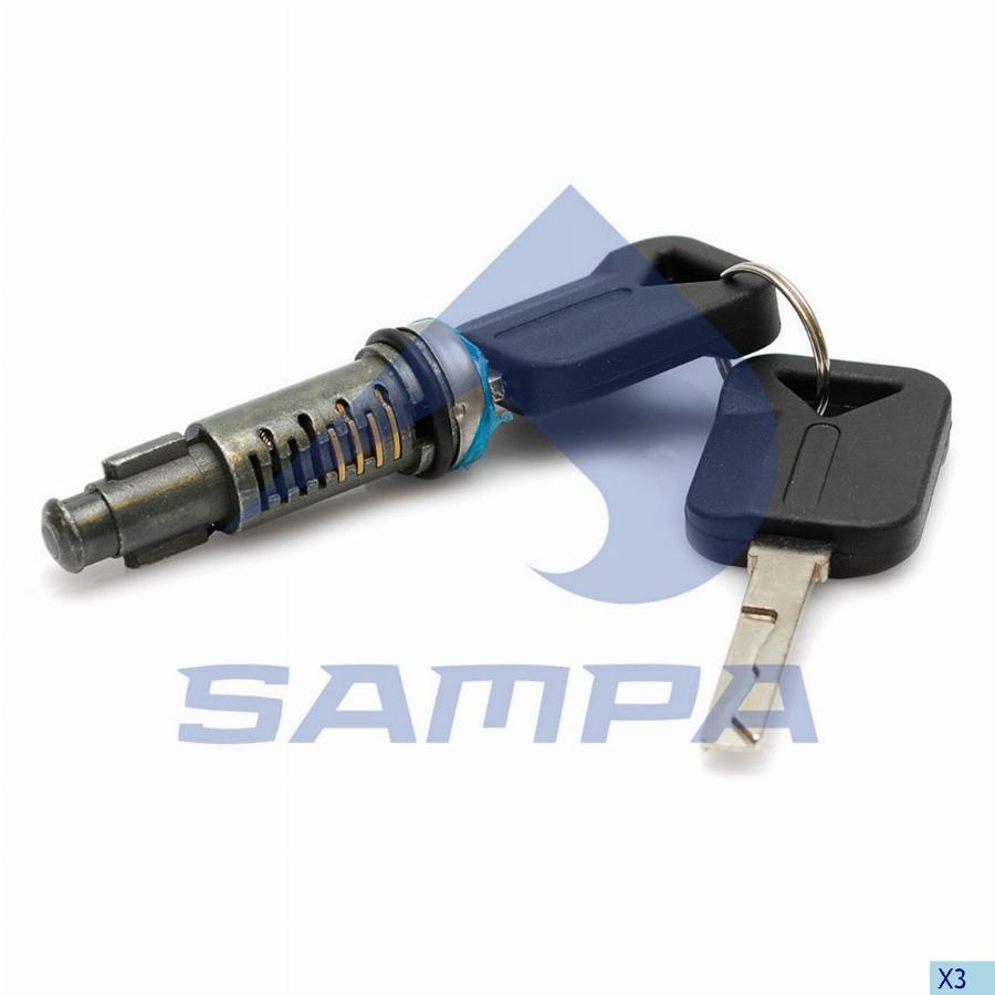Личинка замка двери (к-т 1 лич 2 ключ) Volvo F/FL/FM6/7/FLC/FH/FM/FMX/NH 9/10/11/12/13/16 034.142 Sampa