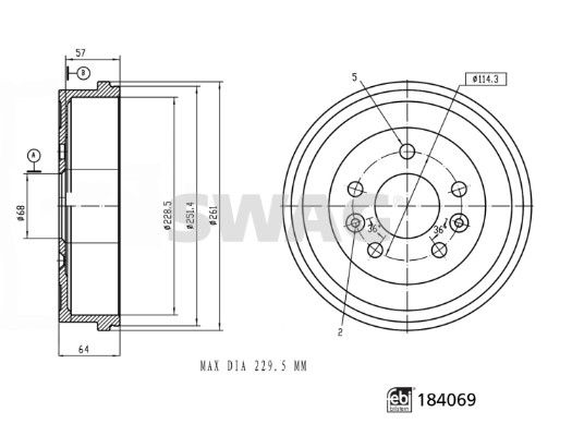 Макс. размер расточки тормозного барабана [мм]: 229.5