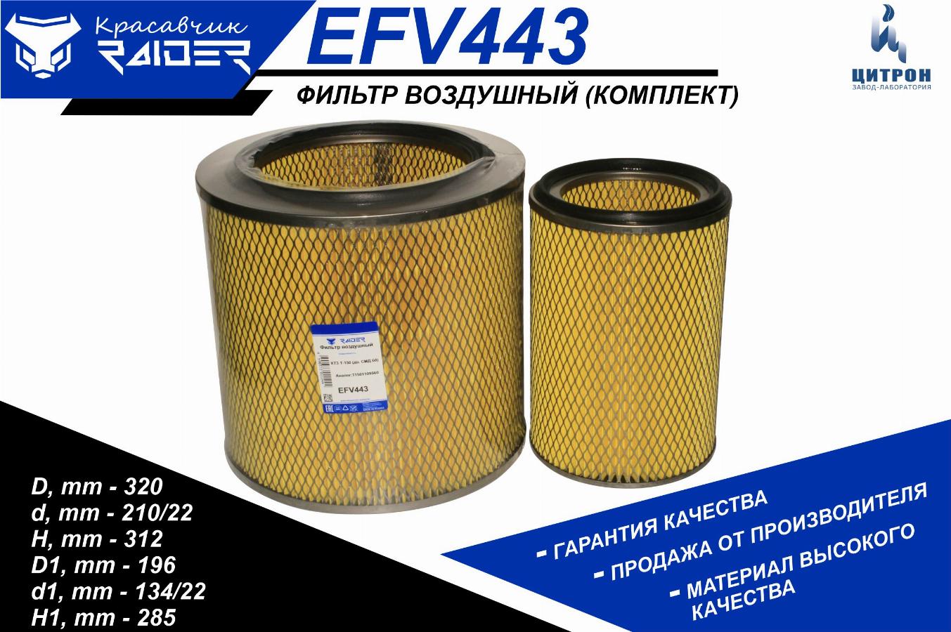 Фильтр воздушный к-т Т-150 СМД-60/комбайн ДОН EFV443 TSN