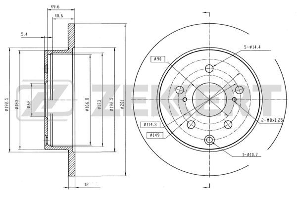 Диаметр расположения крепёжных отверстий ступицы [: 149